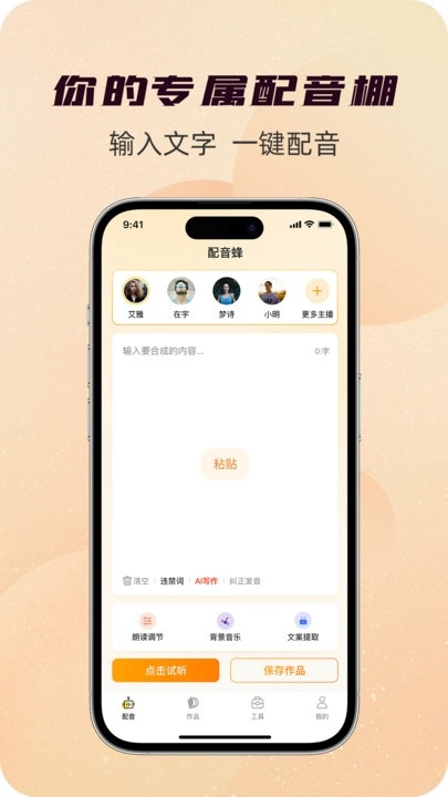 2、众多大V都在使用的配音软件,只要输入文字,便可生成与真人说话效果不相上下的声音。